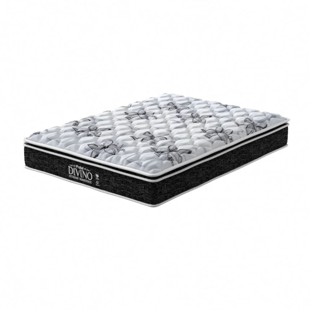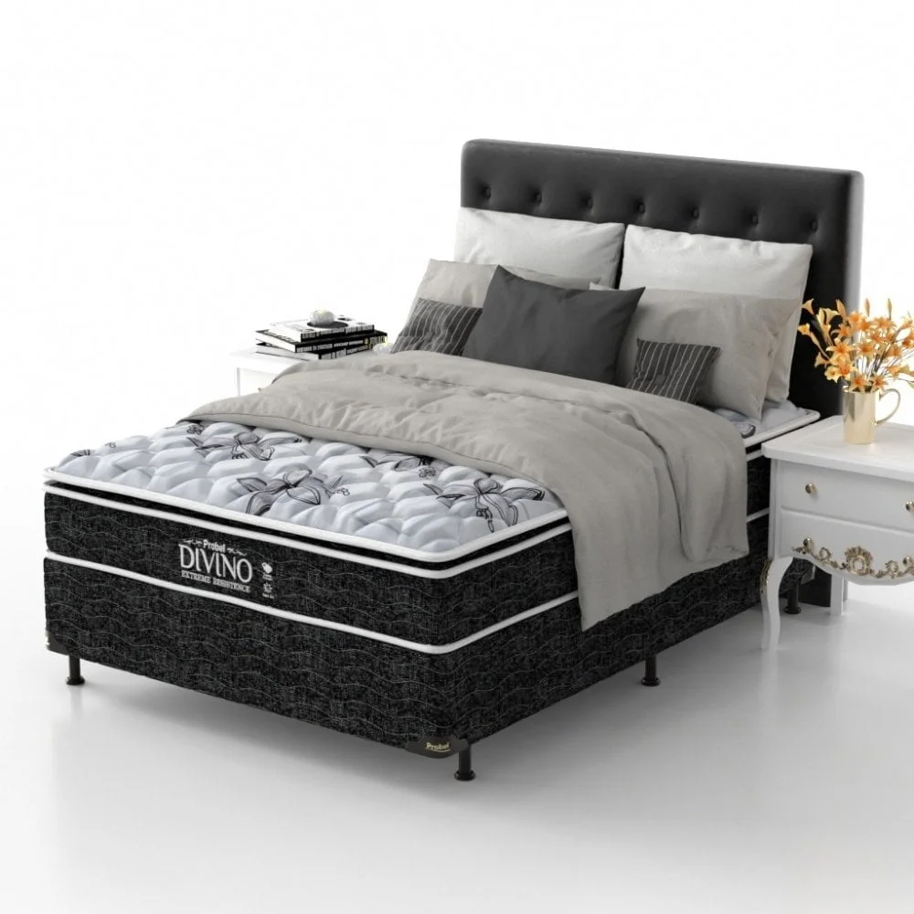 O colchão Divino Extreme Resistence Extra Firme com Pillow Super possui máxima sustentação de pressão em sua superfície e se destaca pela combinação dos benefícios de três mantas de espumas. A linha de colchões Divino é uma das tradicionais da Probel e se caracteriza pela firmeza de suas estruturas, são recomendados para usuários já acostumados com esse Nível de Firmeza ou que tenham um biotipo consistente, tanto em peso quanto em altura.