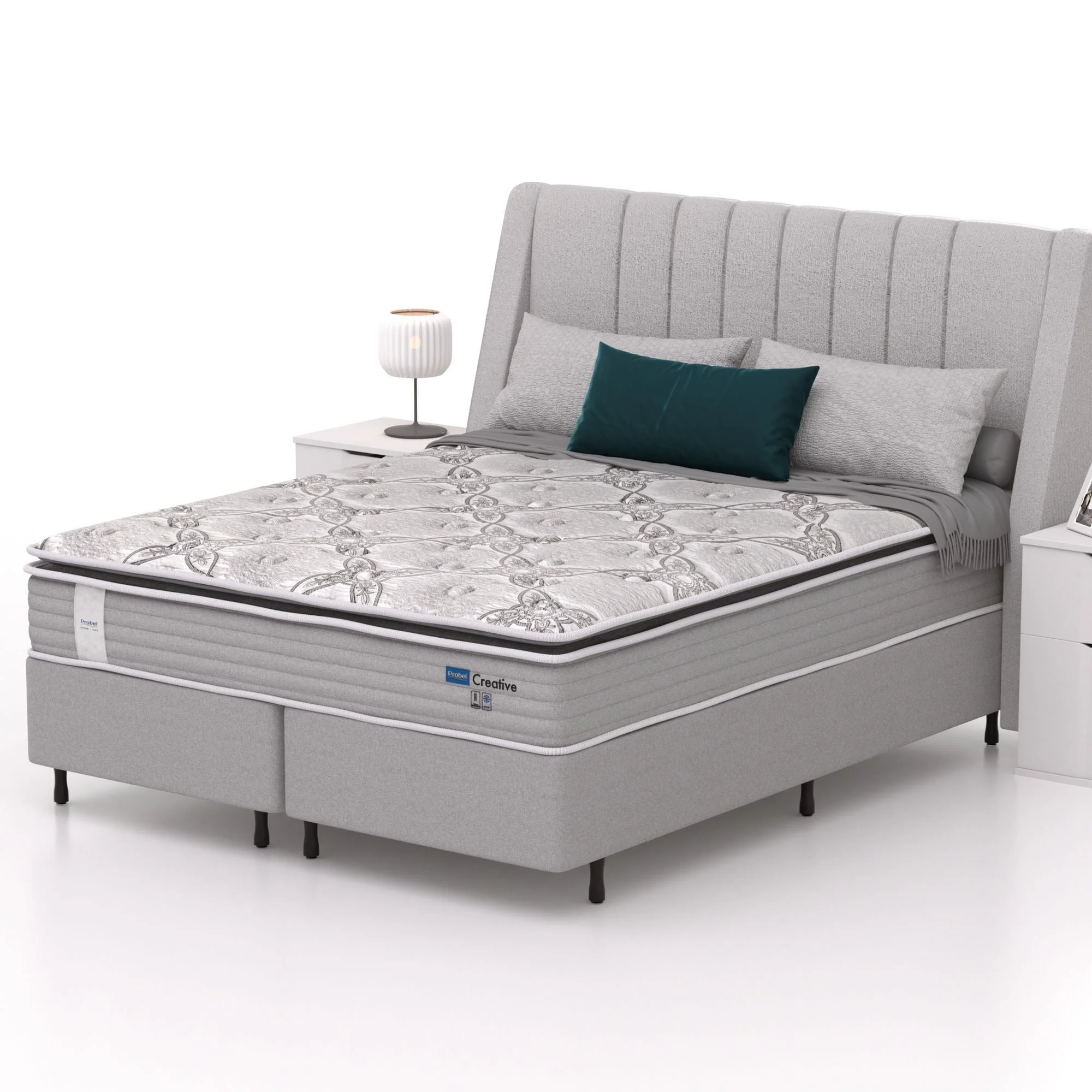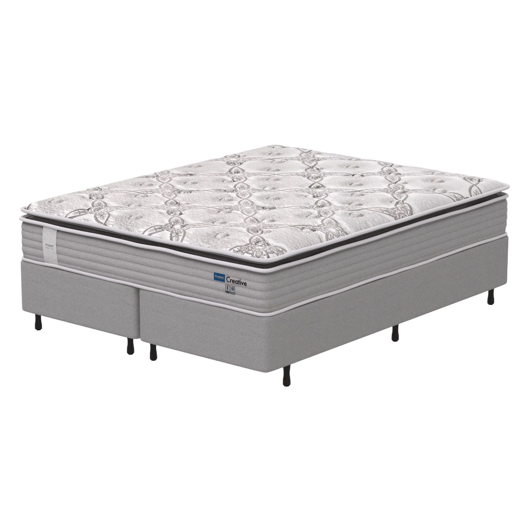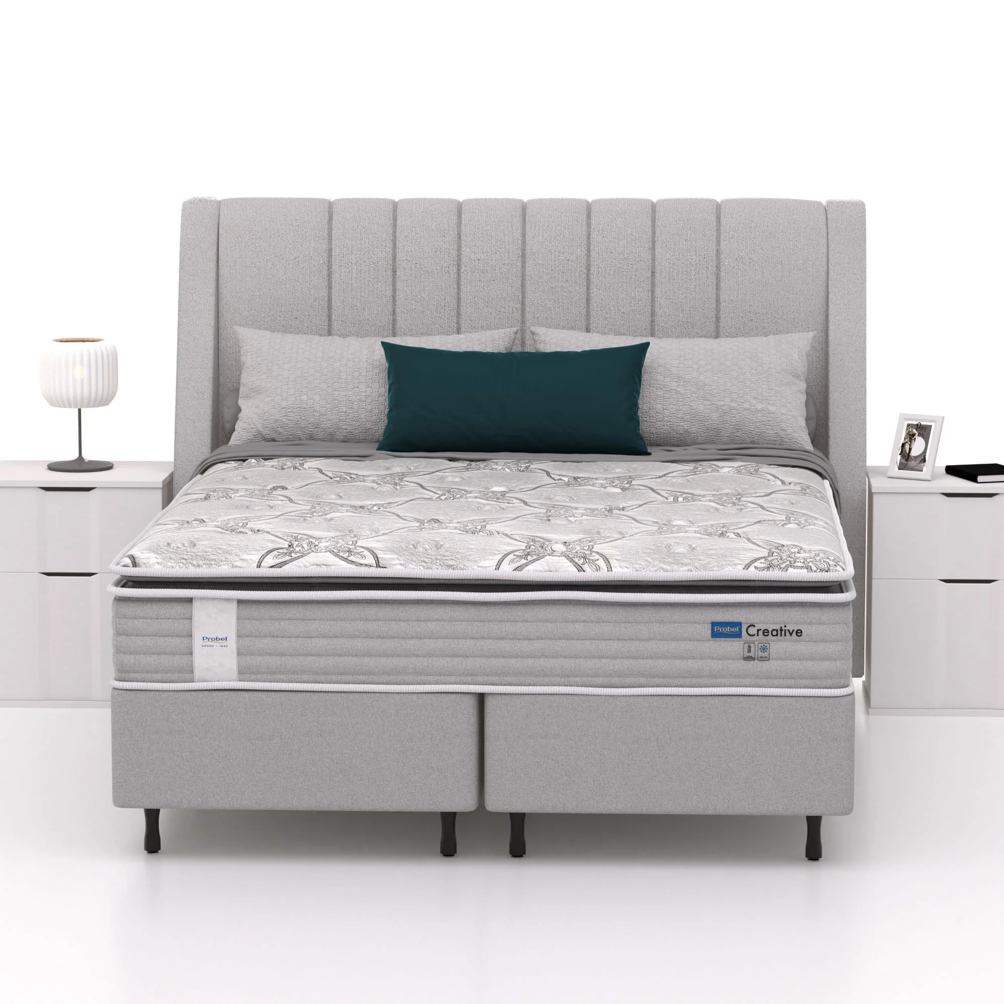 O colchão Creative Pillow Super se destaca pela combinação do conforto máximo e da estabilidade individual proporcionada pelo sistema antirruído do molejo mais querido do mundo, aquele das molas ensacadas individualmente e que quando um se movimenta o outro não sente.